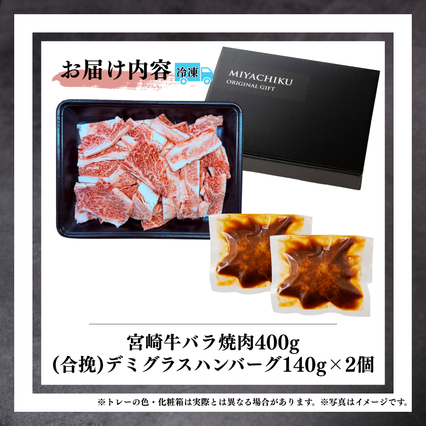 宮崎牛バラ焼肉400g(デミグラスハンバーグ2個付)【新生活応援フェア2026】