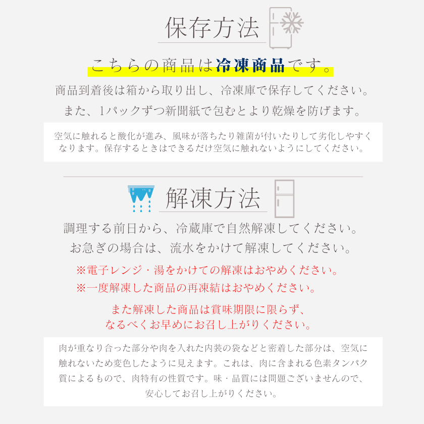 ※冷凍商品と冷蔵商品は保存温度が異なる為、別々でのお届けとなります。
