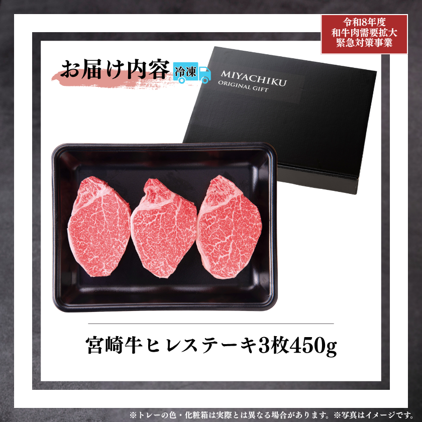【畜産農家応援】宮崎牛ヒレステーキ3枚450g【新生活応援フェア2026】