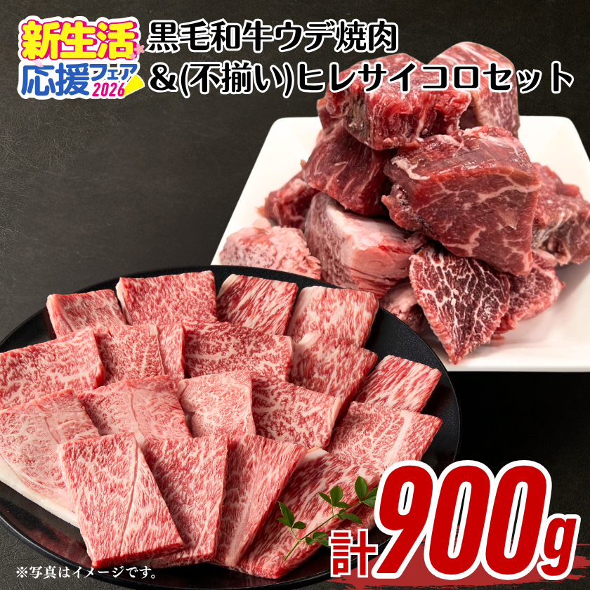 黒毛和牛ウデ焼肉&不揃いヒレサイコロ計900g【新生活応援フェア2026】
