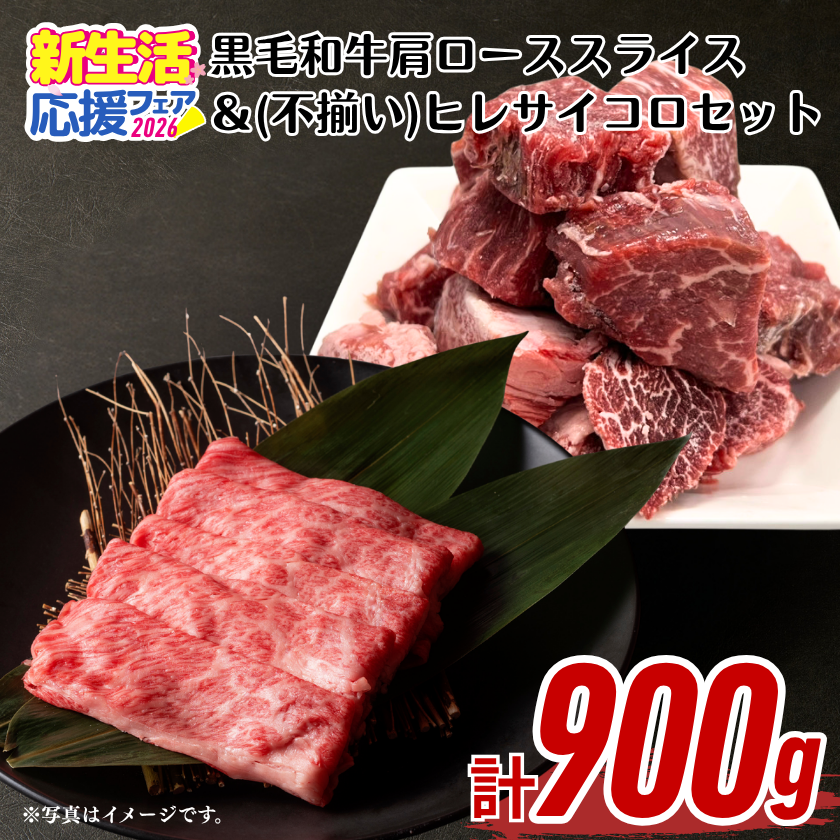 黒毛和牛肩ローススライス&不揃いヒレサイコロ計900g【新生活応援フェア2026】