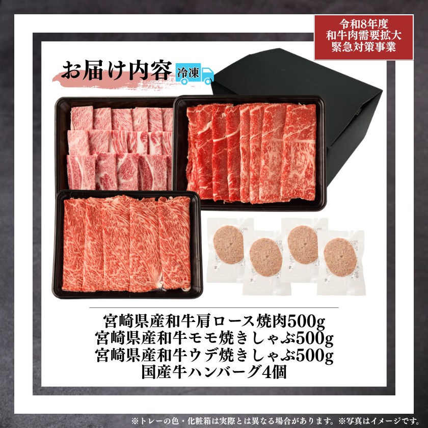 ☆【畜産農家応援】宮崎県産和牛焼肉・焼きしゃぶ1.5kg(牛ハンバーグ4個付)【新生活応援フェア2026】